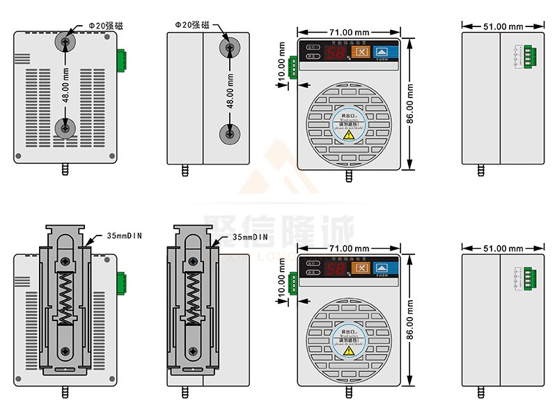 3、除湿风道主动引凝、排出气体加热降湿,有效达到了对电气柜密闭空间防潮除湿的综合治理;