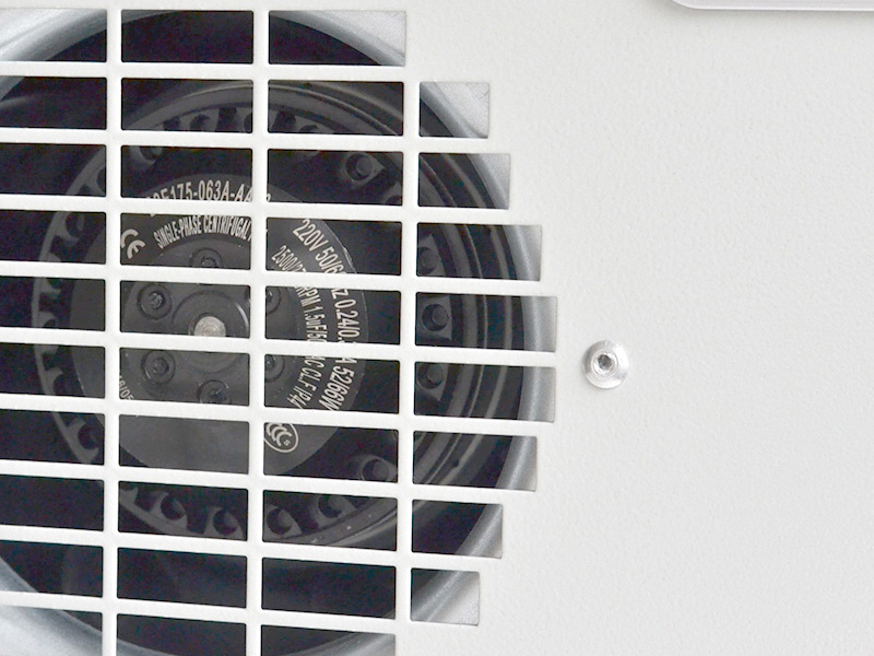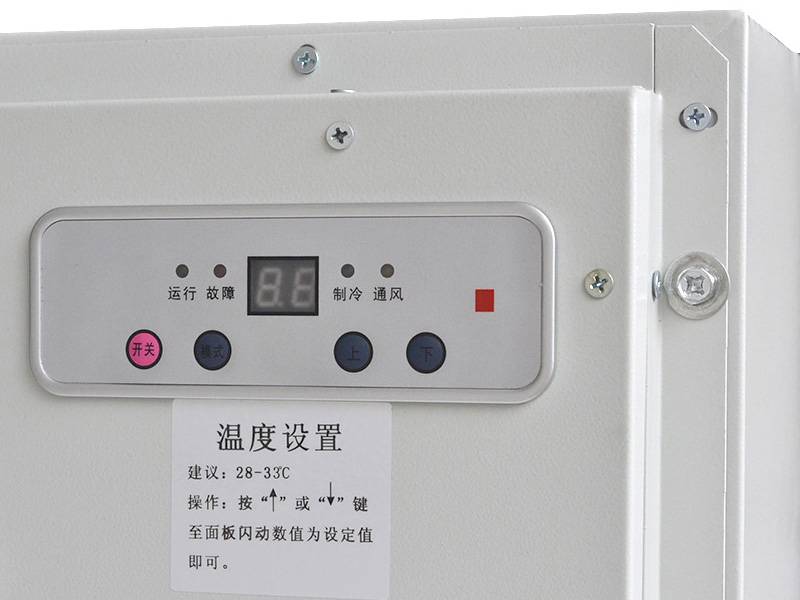 空调器内循环的风扇从上部吸入热空气,使空气不断通过蒸发器的翅片进行热交换,并将放热后变冷的空气从下部排出空调器,并送向柜内。如此柜内空气不断循环流动,达到降低温度的目的。同时,外部循环的风扇从下部吸入外界冷空气,经过热交换后热空气从上部排出空调器。